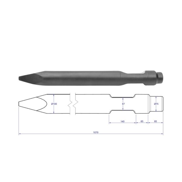 Grot do młota hydraulicznego DHB 100S. Przeznaczony do wymagających prac rozbiórkowych i wyburzeniowych oraz użyciu w kamieniołomach przy wydobyciu kruszywa. Zaprojektowany, aby zwiększyć efektywność pracy, jednocześnie oferując wysoką wydajność w najbardziej wymagającym środowisku pracy.