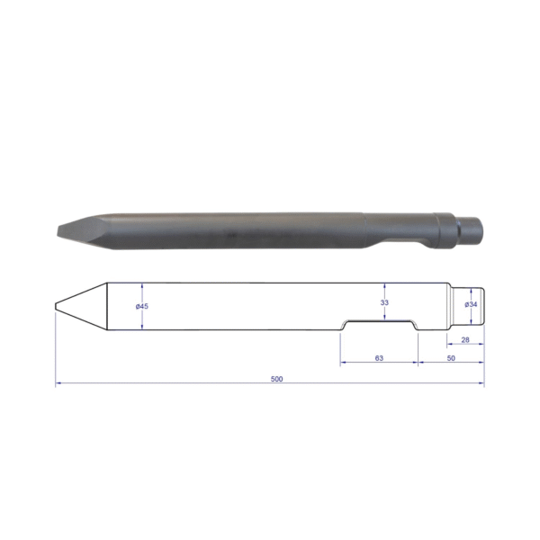 Grot do młota hydraulicznego DHB 10S. Przeznaczony do wymagających prac rozbiórkowych, skuwania betonu i asfaltu, landscapingu oraz kruszeniu wtórnemu skał. Zaprojektowany, aby zwiększyć efektywność pracy, jednocześnie oferując wysoką wydajność w najbardziej wymagającym środowisku pracy.