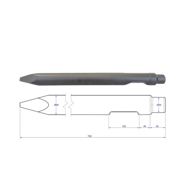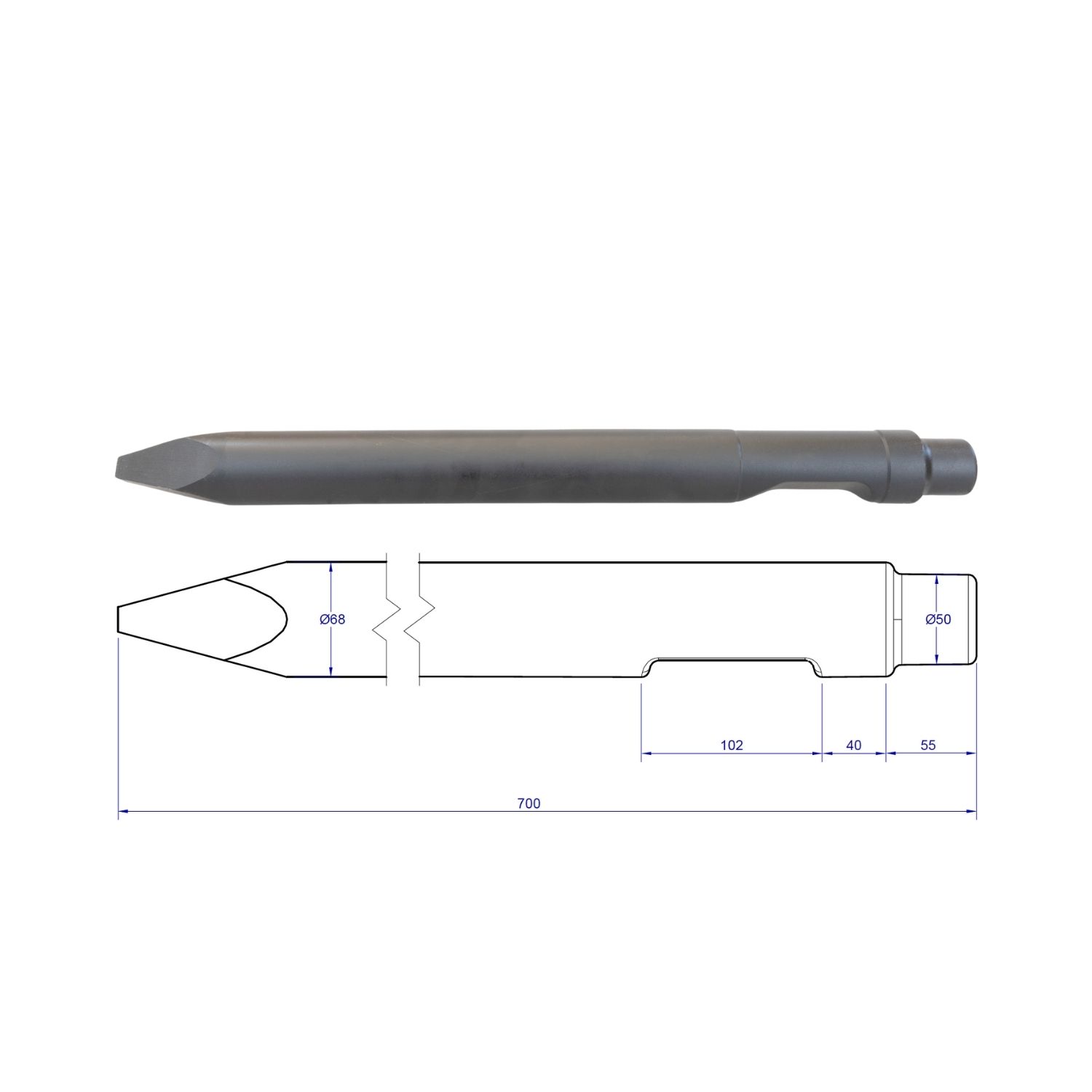 Grot do młota hydraulicznego DHB 30S. Przeznaczony do wymagających prac rozbiórkowych, skuwania betonu i asfaltu, landscapingu oraz kruszeniu wtórnemu skał. Zaprojektowany, aby zwiększyć efektywność pracy, jednocześnie oferując wysoką wydajność w najbardziej wymagającym środowisku pracy.