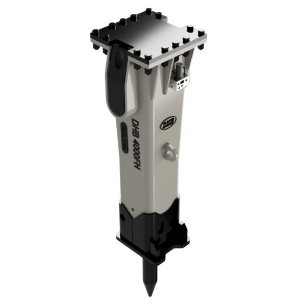 Młot w pełni hydrauliczny DHB 4000FH to najpotężniejsza jednostka w zestawieniu, charakteryzująca się masą niemal 4 ton i dedykowana do największych maszyn operujących w zakresie 36–55 ton. Urządzenie wykorzystuje pełny obieg hydrauliczny do generowania ekstremalnej energii kinetycznej, oferując niezrównaną skuteczność przebijania przy jednoczesnym zachowaniu ochrony ramienia nośnika dzięki zintegrowanemu systemowi stabilizacji ciśnienia.